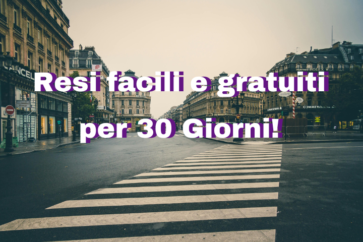 Puoi richiedere il reso dei capinon personalizzatientro 30 giorni. I prodotti personalizzati, invece, non sono restituibili salvo difetti o errori da parte nostra..